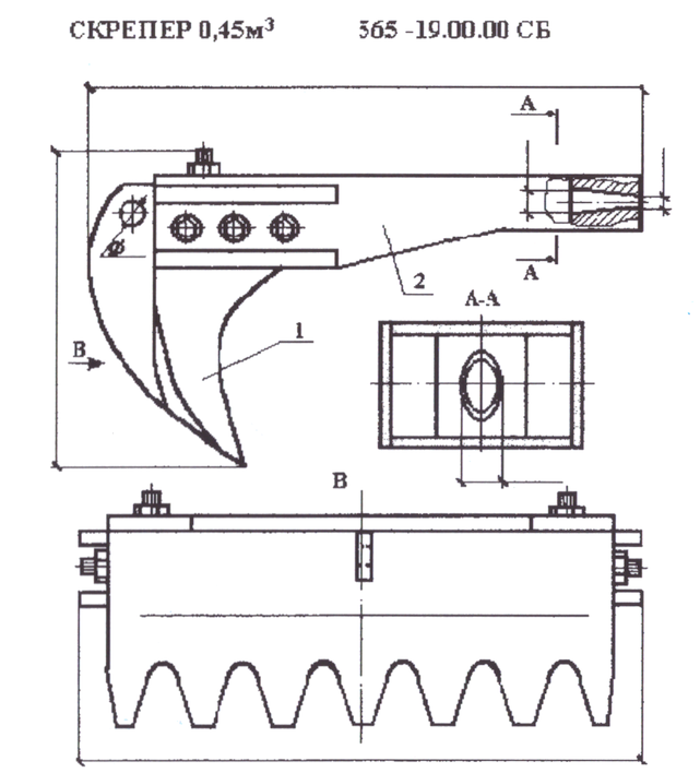 Скреперы и запчасти;Ковш скреперный 0,45 куб. 7 зуб. 565-19 с водилом;-;-