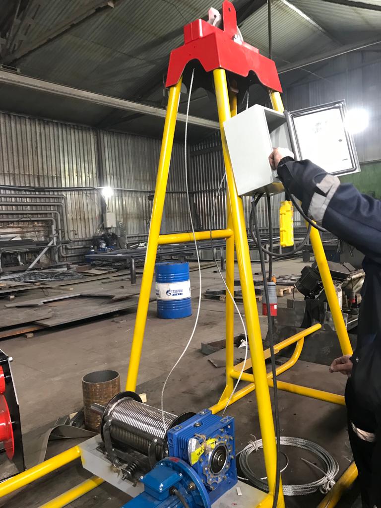 Подъемник МП.ШС-1 в исполнение с двигателем 2,2 кв. и червячным редуктором с передаточным числом 15, обеспечивает автоматический подъем спуск грузов с тяговым усилием 160кг, до 320кг с полиспастом. Канатоёмкость барабана 150м, трос 6 мм. Оснащён ЭМИ тормозом 40Нм(модификации с ТКТ-100 или встроенным в электродвигатель). Обеспечивает скорость подъёма/спуска 0,8-1м/с (без полиспаста). Может быть выполнен на простой автоматике с магнитными пускателями (пуск/реверс), или частотным преобразователем обеспечивающий плавный пуск, реверс и настройки режимов работы.